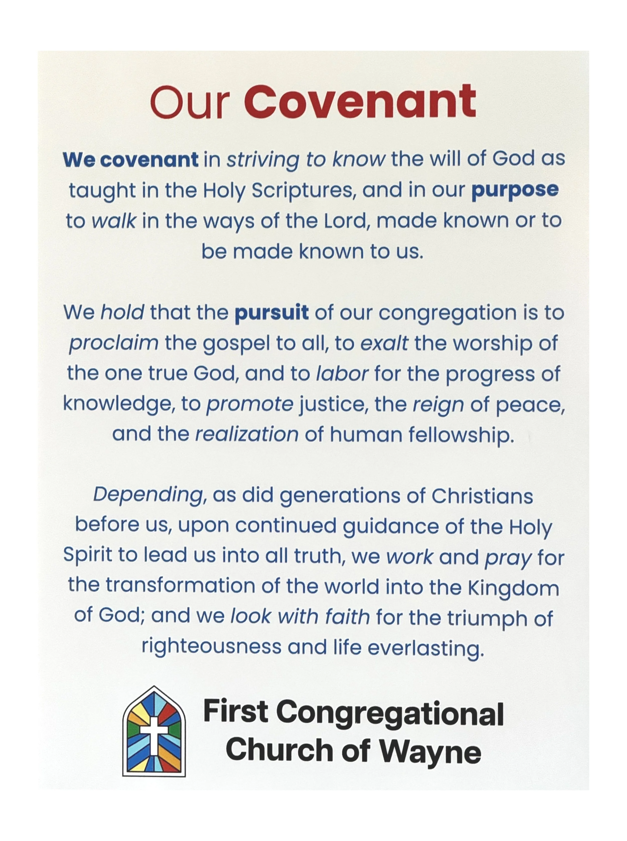 Our Covenant defines our Purpose